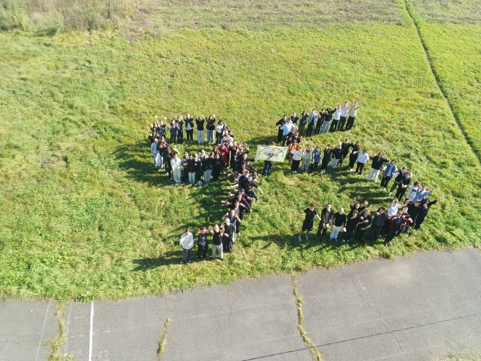 Ребята выстроились в цифру и сделали крутое фото с высоты. Получилось ярко и символично!