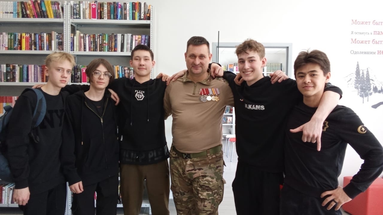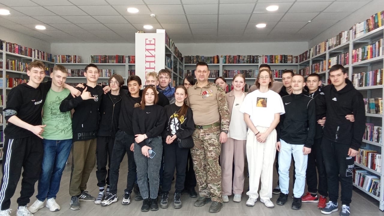 Сегодня в городской библиотеке им И. Рождественского наши студенты встретились с участником СВО, представителем общественной организации "Защитники Отечества", майором МВД Алексеем Гладышевым