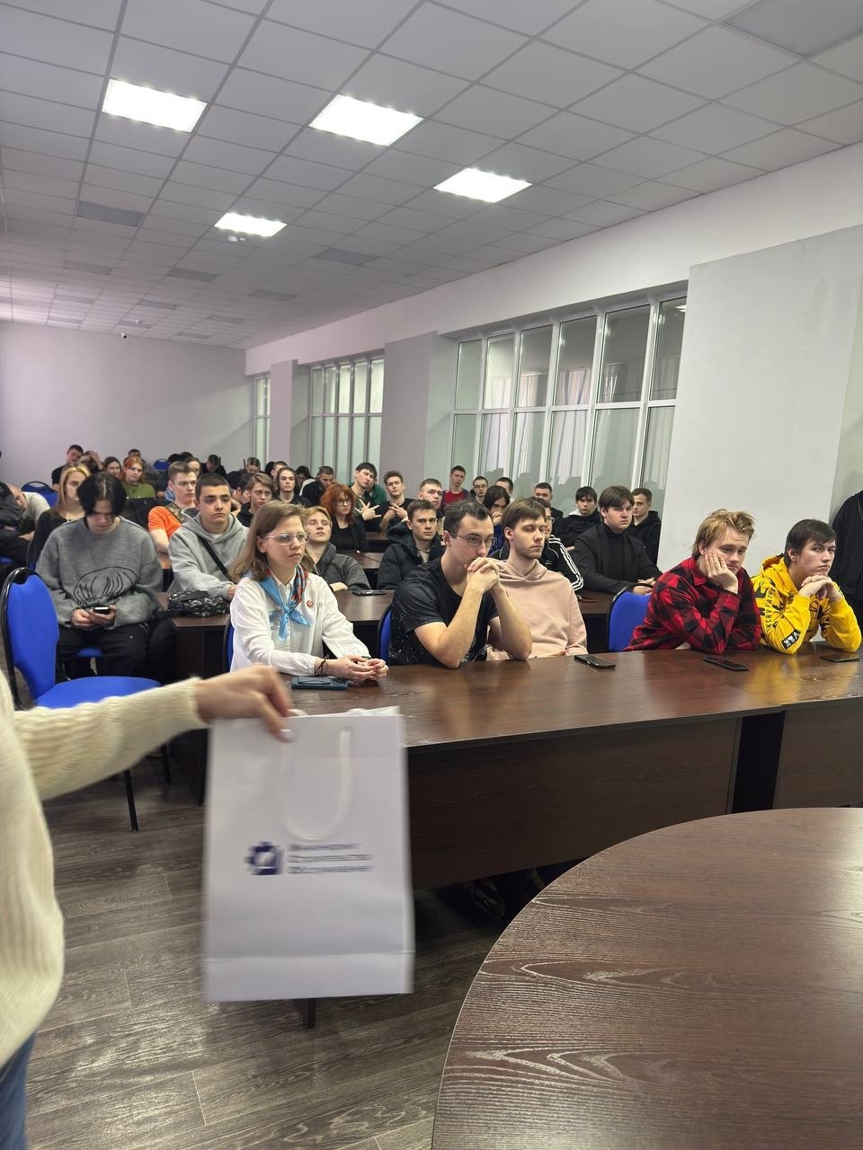 Пообщаться пришли студенты электрики и мехатроники 3–4 курсов. Ребятам рассказали, чем занимается предприятие, как оно развивается, кого ждут на работу и какие навыки важны на производстве.