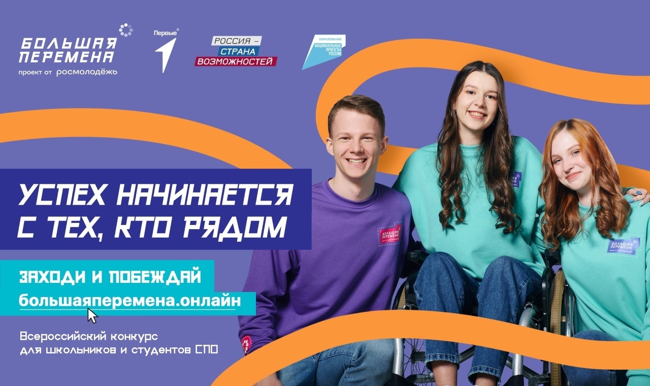 Внимание! Приглашаем студентов к участию в IV Всероссийском конкурсе «Большая Перемена», который реализуется в рамках национального проекта «Образование» и входит в линейку платформы «Россия - страна возможностей».